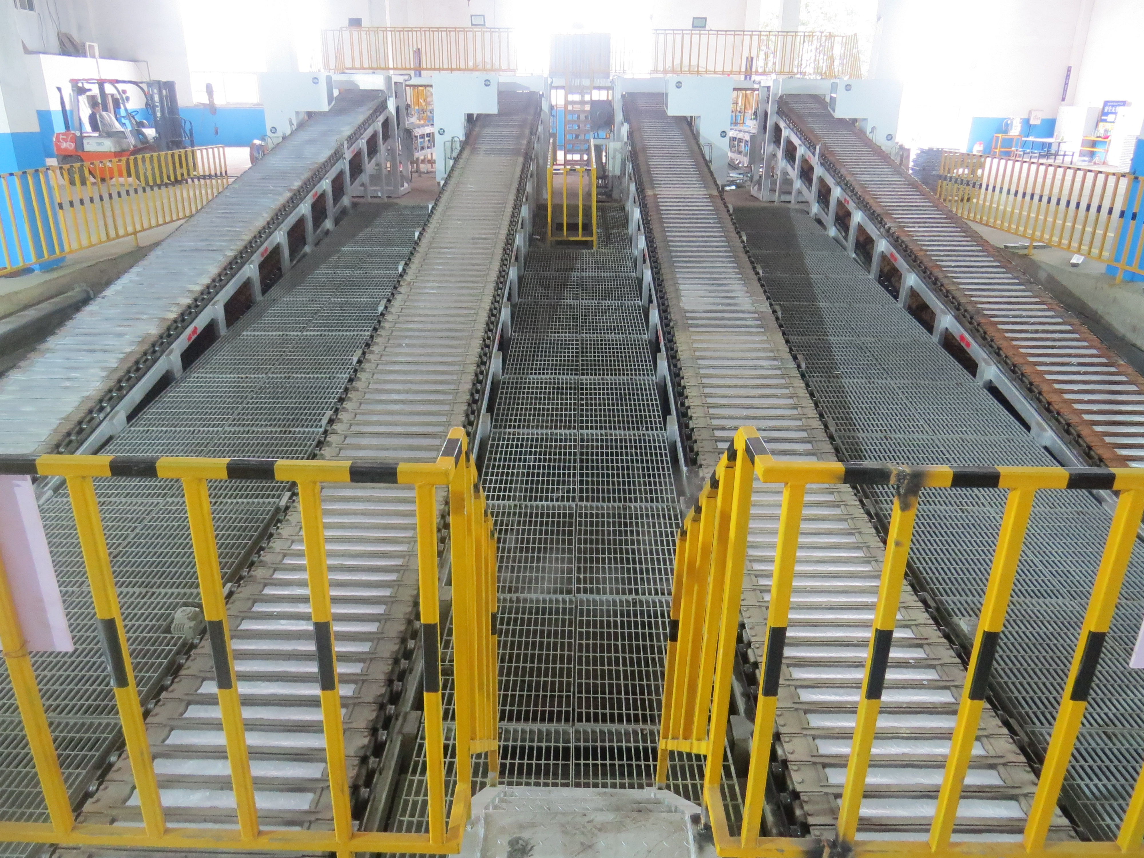 This aluminum alloy ingot production line has a high degree of automation. The two-chamber melting furnace is equipped with regenerative combustion system, aluminum liquid circulation system and automatic temperature control system. It also adopts advanced equipment such as crushing system, X-ray sorting system, automatic feeding system, circulating water cooling system, laser typing system, robot automatic ingot piling, automatic weighing, etc., and realizes the interconnection of equipment data, creating the intelligent manufacturing demonstration line of Botai Group.