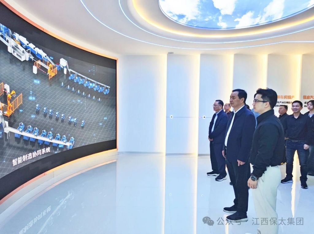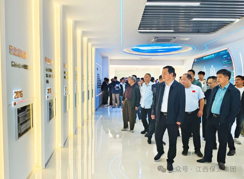 On the morning of October 23, 2024, a group of leaders including Jiang Xun Kai, the Standing Vice Mayor the city, Mei Jian Hua, the Vice Mayor, and Yao Hong Dong, the Deputy Director of the city's Industry and Information Technology Bureau, led a of enterprise representatives from Yingtan City to visit and inspect the Jiangxi Baotai Group's Digitalization Achievements Exhibition Center.